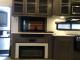 Gourmet Kitchen: Includes a solid-surface countertop extension, a recessed 3-burner cooktop, a 12V refrigerator, and a standard ceiling fan for airflow.