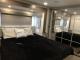 Floating Dinette: A legless table with two chairs and a movable storage ottoman for flexible seating.