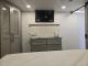 Ample Storage: The bathroom includes linen storage, and the bedroom has a large closet and under-bed storage with gas struts.