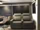 Rear Living Floorplan: The main living area is located at the back of the RV, featuring opposing slide-outs, theater seating, a tri-fold hide-a-bed sofa, and a large entertainment center with an electric fireplace.