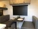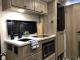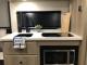 Kitchen: Includes a 12V Electric Refrigerator, a recessed 2-burner cooktop with a glass cover, and a Microwave Oven.