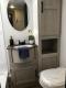 Spacious Bath: A full bathroom with a 40" shower/tub combo, a foot-flush toilet, and a vanity with a medicine cabinet.
