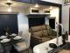 Modern Entertainment: A 5,100 BTU color-changing electric fireplace and a Smart TV come standard in the central living area, which also features a tri-fold sofa and a free-standing dinette.