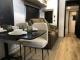 Chef’s Kitchen: Outfitted with a kitchen island (featuring flip-up extensions), solid surface countertops, a 16–18 cu. ft. residential-style refrigerator, and a 4-burner stainless steel oven.