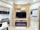 The front master suite provides a relaxing retreat with a king-size bed, wardrobe storage, and easy access to a full bathroom. A convenient bath-and-a-half layout adds functionality for families or entertaining guests, helping eliminate morning traffic during busy camping days.
