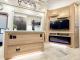 One of the standout features of the Sandpiper 3844QUAD floorplan is its private rear bunkhouse, offering dedicated sleeping space separate from the main living area. With multiple bunks and loft sleeping capacity, this fifth wheel comfortably accommodates larger families or guests while maintaining privacy throughout the coach. The unit sleeps up to seven and features five slide-outs that maximize interior space.