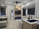 The kitchen? It’s a culinary command center. Residential fridge, island with deep sink, and enough counter space to meal-prep for an army — or at least a very hungry family of six. The living area turns cozy nights into full-blown movie marathons with theater seating and a fireplace that says, "Yeah, I camp… but make it classy."