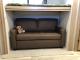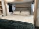 Sleeping for Four: Two fixed bunks (32" x 74") on one side, plus a flip-up bunk over a tri-fold sofa on the other.