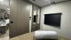 Up front, there's a private bedroom with a queen bed and wardrobe.